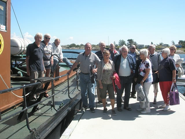 Den 5 juli gick ESAB IV ut med 12 glada ESAB-seniorer mot Knarrholmen. Vi njöt av strålande sol, bara lite vind och lagom varmt. På ”Knarren” möttes vi av Janne och Vibeke Berntsson, som har haft en sommarstuga på ön i 20 år. Janne guidade oss runt och berättade om gamla tider och vad som har skett på ön sedan Metall- och Handelsfacken sålde den till BRA Bygg för några år sedan. En mycket uppskattad och informativ presentation. Sedan blev det lunch i den nybyggda restaurangen vid färjeläget.